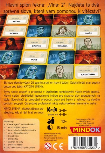 Skrytou identitu všech 25 agentů znají jen hlavní špióni. Ostatní hráči znají agenty pouze pod jejich KRYCÍMI JMÉNY . Týmy spolu soupeří o prvenství v úspěšném kontaktování všech svých agentů.