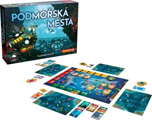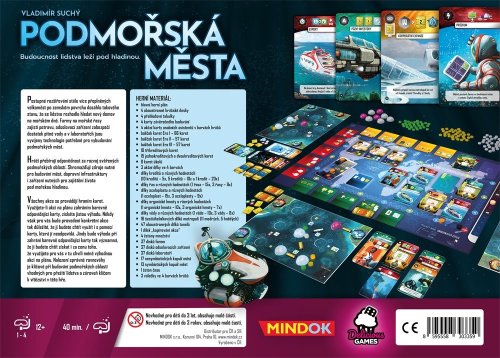 Postupné rozšiřování stále více přeplněných velkoměst po zemském povrchu dosáhlo takového stavu, že se lidstvo rozhodlo hledat nový domov na mořském dně. Farmy na mořské řasy zajistí potravu, odsolovací zařízení zabezpečí dostatek pitné vody a v laboratořích jsou vyvíjeny technologie potřebné pro vybudování podmořských měst. Hráči přebírají odpovědnost za rozvoj svěřených podmořských oblastí. Shromažďují zdroje nutné pro budování měst, dopravní infrastruktury i zařízení nutných pro zajištění života pod mořskou hladinou. Všechny akce se provádějí hraním karet. Využijete-li akci na plánu zahráním barevně odpovídající karty, získáte jistou výhodu. Někdy však pro vás bude provedení konkrétní akce tak důležité, že ji budete chtít využít i s pomocí karty, která jí neodpovídá. Jindy bude výhoda při zahrání barevně odpovídající karty tak významná, že ji budete chtít získat i za cenu toho, že využijete pro vás v tu chvíli méně výhodnou akci na plánu. Nalezení správné rovnováhy je klíčové při budování podmořských oblastí vhodných pro přežití lidstva a zároveň klíčem k vítězství v této hře. Balení obsahuje: • hlavní herní plán • 4 oboustranné hráčské desky • 4 přehledové tabulky • 4 karty závěrečného bodování • 4 akční karty osobních asistentů v barvách hráčů • balíček karet Era I – 66 karet • balíček karet Era II – 57 karet • balíček karet Era III – 57 karet • 10 tříkreditových karet • 15 jednokreditových a dvoukreditových karet • 8 karet úkolů • 3 akční dílky ve 4 barvách • dílky kreditů o různých hodnotách (10 kreditů – 5x, 5 kreditů – 10x a 1 kredit – 20x) • dílky řas o různých hodnotách (1 řasa – 15x, 3 řasy – 9x) • dílky oceloplastu o různých hodnotách (1 oceloplast – 15x, 3 oceloplasty – 9x) • dílky organické hmoty o různých hodnotách (1 organická hmota – 10x, 3 organické hmoty – 7x) • dílky vědy o různých hodnotách (1 věda – 10x, 3 vědy – 8x) • 16 šestiúhelníkových dílků metropolí (11 modrých, 5 hnědých) • 47 oboustranných dílků tunelů • 1 dílek „kopírování akce“ • 4 žetony množství • 37 disků farem • 37 disků odsolovacích zařízení • 37 disků laboratoří • 17 nesymbiotických kopulí měst • 13 symbiotických kopulí měst • 1 žeton času • 3 válečky ve 4 barvách hráčů