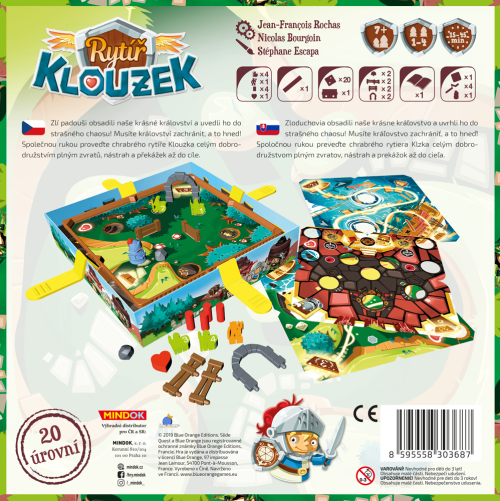 Zlí padouši obsadili naše krásné království a uvedli ho do strašného chaosu. Musíte království zachránit, a to hned! Společnou rukou proveďte chrabrého rytíře Klouzka celým dobrodružstvím plným zvratů, nástrah a překážek až do cíle. Proveďte rytíře celou trasou na každé mapě od startu k cíli tak, aby se vyhnul všem pastím, překážkám a nástrahám. Trasu určuje stezka vyznačená světlou čarou. Pokud se vám podaří dorazit až do cíle poslední mapy s alespoň jedním zbývajícím životem, vyhráli jste. Obsah balení: 1 deska s pastmi, 4 plastové páky, 20 map znázorňujících 4 různá prostředí, 1 figurka rytíře, 8 překážek (2 brány, 2 velké ohrady, 2 malé ohrady a 2 balvany), 9 nástrah (4 výbušné miny, 4 bandité očíslovaní 1–4 a 1 figurka vůdce banditů), 1 počítadlo životů (s vyznačenými třemi úrovněmi obtížnosti), 1 srdíčko, 1 mechanický ukazatel pro uložení rozehrané hry.
