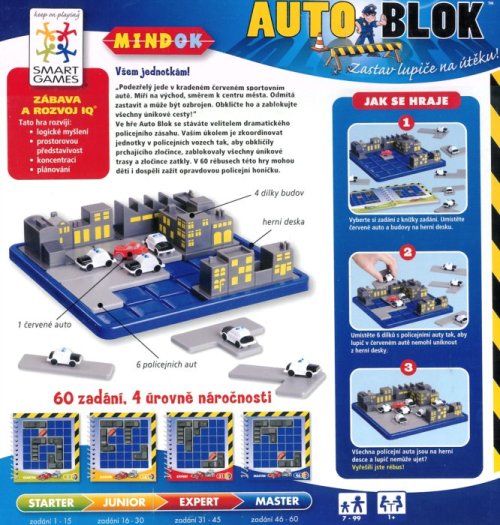 Hra Auto blok patří do skupiny víceúrovňových, logických her Smart games , které jsou určeny především pro jednoho hráče (nicméně hru může hrát i hráčů více). Logické hry Smart Games obsahují vždy zadání v několika různých stupních obtížnosti, rozvíjí IQ, logické myšlelní, prostorovou představivost, koncentraci a plánování.