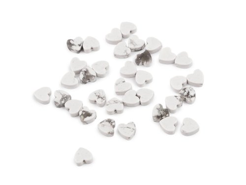 Minerální a skleněné korálky srdce Ø6 mm - bílá minerál (35 ks)