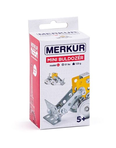 Startovací mini stavebnice Merkur, z které je možné sestavit 1 model-buldozér. Ideální pro trénink jemné motoriky a představivost. Vhodné i pro děti, které s Merkurem začínají, ale také pro sběratele. Se sestavenými modely si lze hrát, jsou velmi odolné. Stavebnice obsahuje 51 dílků.| Rozměr balení:5x9,5x4,5 cm |Rozměr modelu: 7,5x5x3,5 cm. Věk: 5+| Nevhodné pro děti mladší 3 let | Váha: 123 g