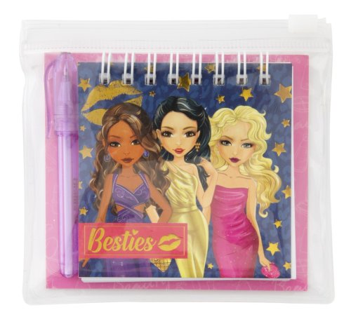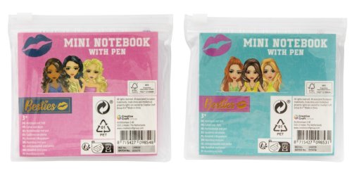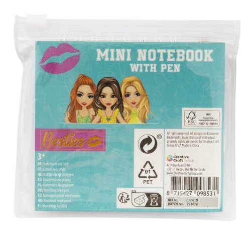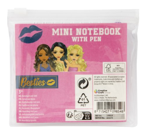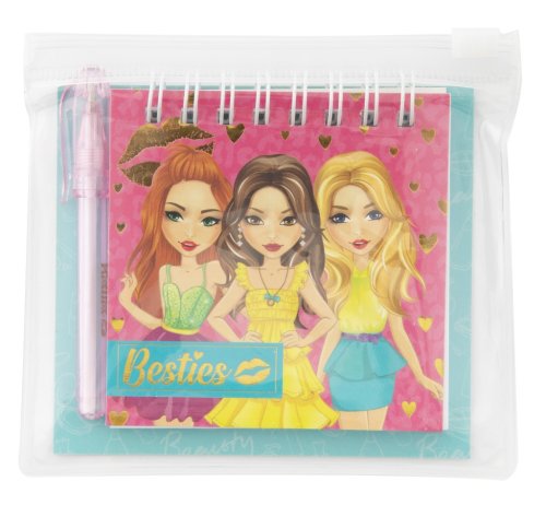 Mini kroužkový blok s tužkou Besties – velikost bloku 8×8 cm.