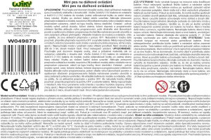Mini pes RC na dálkové ovládání. Rozměry 5,5x9,5x10 cm. Infračervený port. Světelné a zvukové efekty. 4xAG13 baterie do psa součástí, 2xAAA do ovladače není součástí. Ovladač - ON/OFF tlačítko, programovací tlačítko, chůze všemi směry.