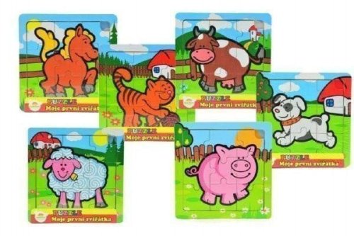 Oblíbená zvířátka z řady Moje první zvířátka jako puzzle. Vybrat si můžete ze šesti druhů. Puzzle obsahuje 9 dílků Rozměr puzzle: 15 x 15 cm Vhodné od 12 měsíců