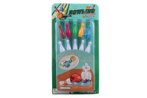 Společenská minihra kuželky. Balení obsahuje 10 kuželek, 3 koule a vystřelovačku. Baleno na kartě. Rozměry balení 13x26x3 cm. Materiál plast. Věk 3+