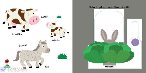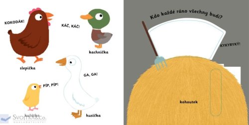 Objevovat svět na farmě s tímto leporelem je tak zábavné! Kdo každé ráno všechny budí? Kdo má legračně zakroucený ocásek? Kdo hopká a má dlouhé uši? Co táhne valník se senem? Stačí jen vložit prstík do správného otvoru, lehce vysunout, zatáhnout nebo otočit ve směru šipky a hned bude váš malý objevitel či objevitelka znát odpovědi. Leporelo je určeno pro nejmenší děti a má pevné stránky s posuvnými a otočnými prvky, a tak si naši nejmenší mohou při prohlížení a rozeznávání zvířátek a věcí z farmy procvičit i jemnou motoriku.