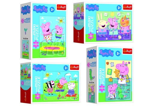Poskládajte si puzzle s motivem oblíbeného seriálu Prasátko Peppa. Můžete si vybrat ze čtyř druhů motivu. Puzzle obsahuje 20 Maxi dílků. Puzzle rozvíjí dětské schopnosti a cvičí šikovnost. Velikost složeného obrázku je 16 x 22cm. Rozměry balení: 8 x 11 cm Vhodné pro děti od 3 let
