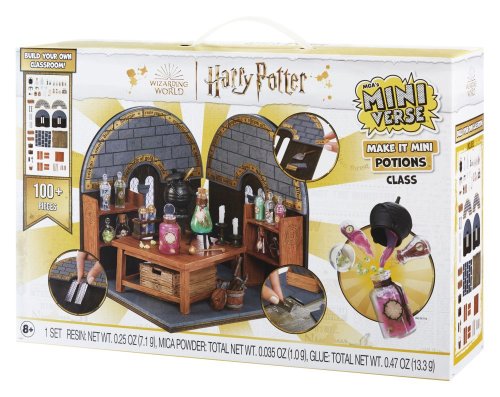 Mini hračky...VELKÁ překvapení! Udělej to! Vystav to! MGA‘s Miniverse přináší Kouzelnickou dílnu, kam si můžeš ukládat všechny vyrobené lektvary a kouzla. Vyrobíš ji z ingrediencí ve tvém balíčku, pak vše necháš alespoň 5 minut na přímém slunci vytvrdnout nebo na ně zasvítíš UV lampičkou a můžeš začít výuku! Vyrobíš si zde stěny, podlahu a nábytek. Podlahu složíš s dlaždic, každá má své číslo, použiješ cement a můžeš si zahrát na zedníka či obkladače.