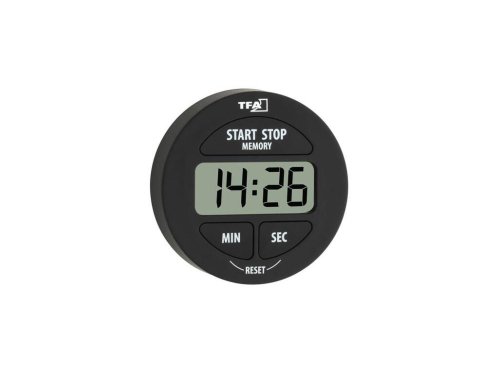 rozměry: pr. 55 x 17 mm hmotnost: 27 g rozsah: doba až 99 minut, 59 sekund materiál: guma barva: černá s magnetem pro upevnění montáž na zeď nebo postavení na stůl včetně 1 x LR44 baterie