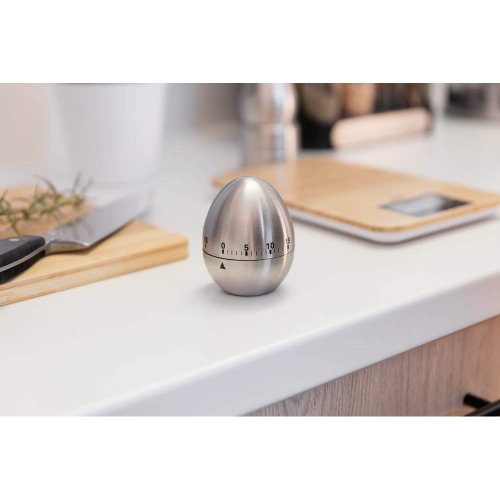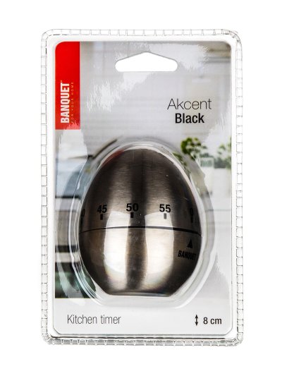 Kuchyňská mechanická minutka AKCENT, v nerezovém provedení, ve tvaru vajíčka. Minutka je velmi praktický pomocník do kuchyně.