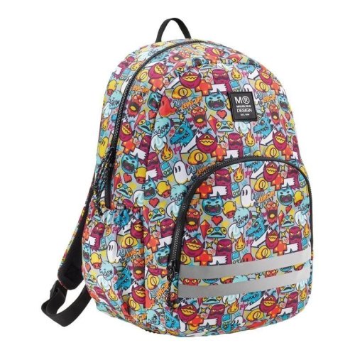 Moderní, lehký batoh v jemném barevném motivu určený začínajícím teenage klukům. Dělení na dvě kapsy poskytuje dostatek prostoru pro školu a osobní drobnosti. Recyklovaný odolný materiál prodlužuje životnost, zesílené výztuhy zespodu chrání batoh před poškozením a znečištěním.•rozměry: 400 × 280 × 160 mm•materiál: recyklovaný polyester (rPET)•2 kapsy na zip, síťovaná kapsa na drobnosti•2 otevřené boční kapsy na láhev