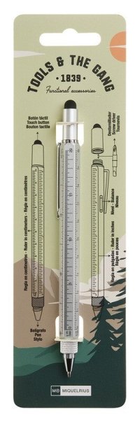 Multifunkční kuličkové pero spojuje elegantní psací nástroj s pěti užitečnými funkcemi, které využijete doma, v kanceláři i na cestách. Skvělé vychytávky, které máte vždy po ruce. Kromě kuličkového pera obsahuje pravítko v centimetrech i palcích, vodováhu, plochý a křížový šroubovák a dotykový stylus pro smartphony a tablety. Modrá náplň, inkoust na olejové bázi, který hladce klouže po papíru. <br> <br> • rozměry pera: 155 × O 13 mm<br> • stiskací mechanika 5 v 1: kuličkové pero, pravítko v centimetrech i palcích, vodováha, plochý a křížový šroubovák, dotykový stylus pro tablety a smartphony<br> • barva: stříbrná