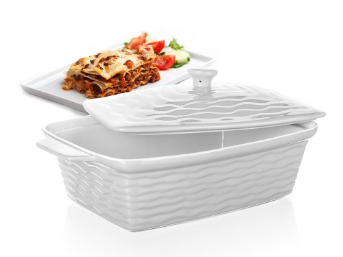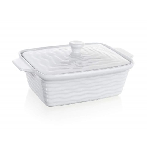 Keramická obdélníková zapékací forma CULINARIA White s víkem a praktickými držadly pro snadnou manipulaci. Vnější strana formy má vlnkový reliéf. Keramické formy rovnoměrně absorbují teplo a postupně ho uvolňují, díky čemuž se pokrmy dobře propečou.