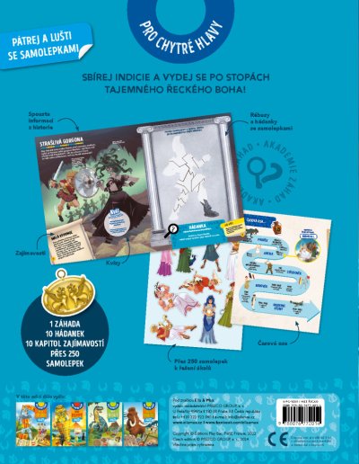 Vydejte se na dobrodružnou misi s krycím názvem ŘECKO! Akademie záhad, jež řeší hádanky staré stovky, tisíce, ba miliony let, má pro vás zapeklitý případ. Tamní vědci objevili pozůstatky velkolepého starořeckého chrámu, který byl podle prvních výsledků bádání zasvěcen některému z mnoha bohů řecké mytologie… Pokračujte v archeologickém šetření, sbírejte indicie a zjistěte, komu byl před více než 2500 lety chrám zasvěcen. Jen pokud se dokážete úspěšně popasovat se všemi rébusy, kvízy a úkoly, přijdete tomu na kloub! Máte na to přes 250 samolepek, a navíc spoustu poutavých informací a zajímavostí z historie.