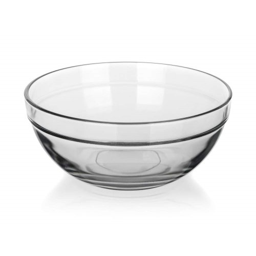 Skleněná miska je vyrobena z čirého skla. Tvar misky umožňuje skládání misek na sebe, jednotlivé kusy do sebe perfektně zapadají a zabírají minimum místa v kuchyni.