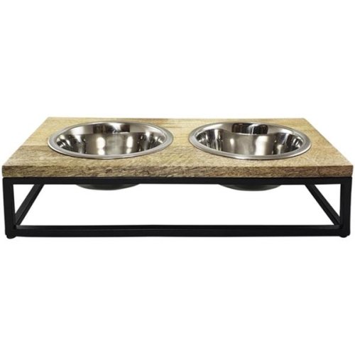 Designový stojan svým vzhledem skvěle zapadne do každého interiéru. Deska z mangového dřeva je připevněná na robustní kovový rám. Vyjímatelné nerezové misky o objemu 800 ml jsou určené na vodu a krmivo. Stojan je opatřen protiskluzovými nožičkami. Rozměry (cca): 40 × 20 × 11 cm