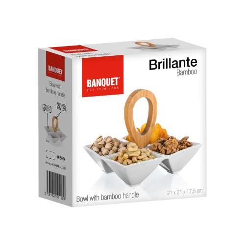Miska dělená, 21 x 21 x 17 cm, porcelán / bambus, BRILLANTE.