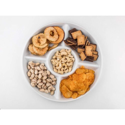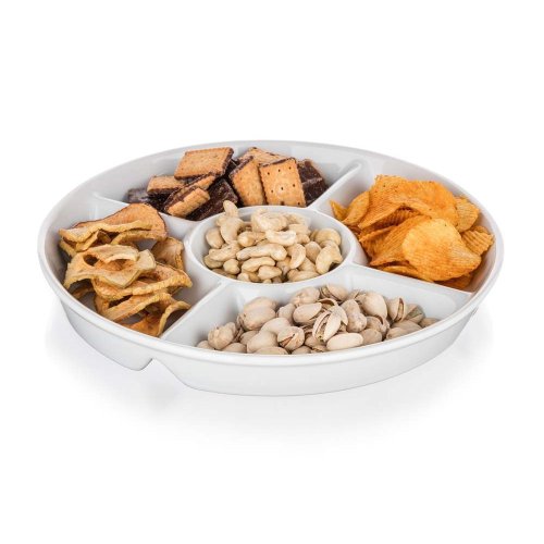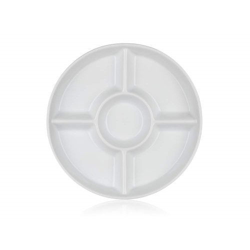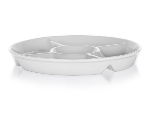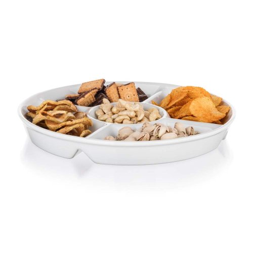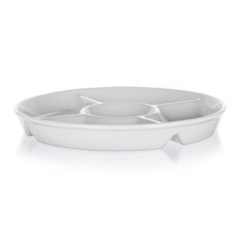 • Kulatá dělená servírovací porcelánová miska BIANCA v bílé barvě, je vhodná pro servírování různých dipů, oříšků, chipsů, ovoce či zeleniny
