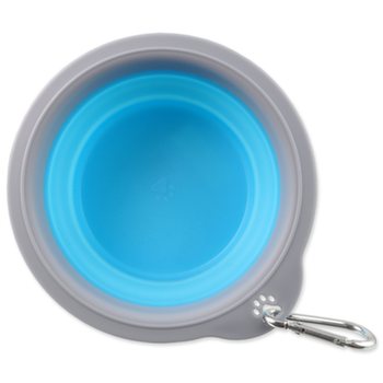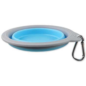 Cestovní miska skládací. Vyrobena z odolného materiálu silikonu, snadno složitelná do kompaktních rozměrů. Vhodná na cesty a dlouhé procházky. Nepřijímá pachy a snadno se udržuje. Odolná proti nárazům a mrazu. Obsahuje karabinu pro uchycení na batoh nebo oblečení.