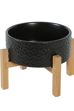 Keramická miska pro psy i kočky v elegantním designu. Miska je na bambusové podnoži, která je opatřena protiskluzovými podložkami.