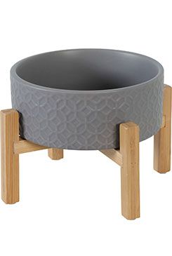 Keramická miska pro psy i kočky v elegantním designu. Miska je na bambusové podnoži, která je opatřena protiskluzovými podložkami.