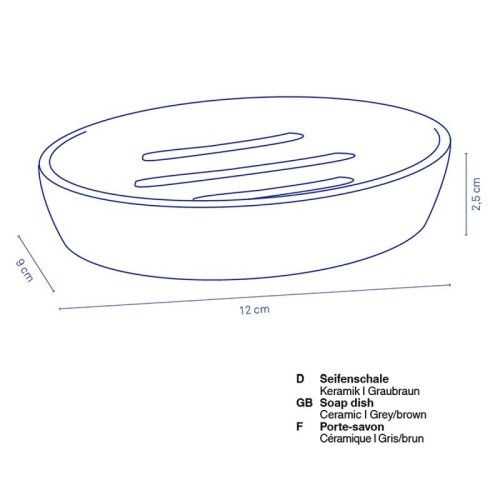 Speciální miska na mýdlo ze série Dots. Vizuálně šedohnědý exemplář je něčím výjimečný. Takzvané "tečky" jsou vystouplé a jsou tedy cítit, když držíte mýdlenku v ruce. Rozměry: délka 12 cm, výška 2,5 cm Keramický, lesklý, 12x9 cm, 2,5 cm v