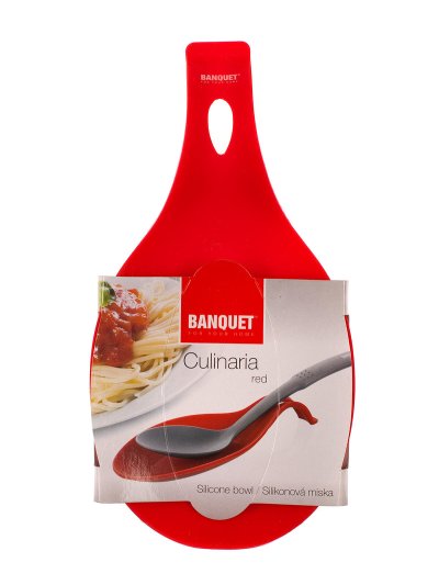 Silikonová odkládací miska CULINARIA red, rozměry: délka 23 cm, šířka 11,5 cm, výška 2,5 cm. Praktická pomůcka na odkládání vařeček, příborů a jiného náčiní při vaření. Silikon je velmi populární materiál, který pro své jedinečné vlastnosti našel své uplatnění i v kuchyni. Vyrábí se z něj různé druhy forem na pečení, vály a válečky na těsto, stěrky, mašlovačky, různé druhy kuchyňské náčiní a mnohé další výrobky.