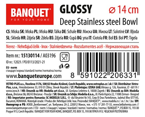 Nerezová hluboká miska GLOSSY. Miska má široké využití v kuchyni, snadno se udržuje, je hygienická a odolná.