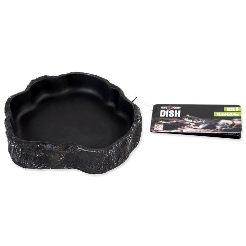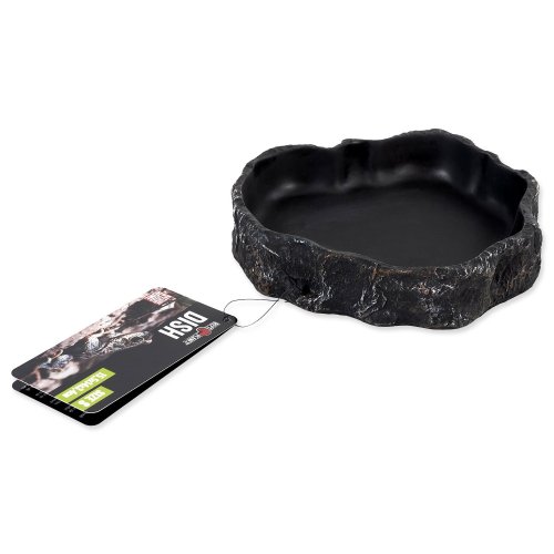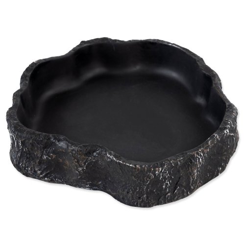 Miska na vodu či krmivo pro plazy, obojživelníky a další druhy zvířat, v černém designu.