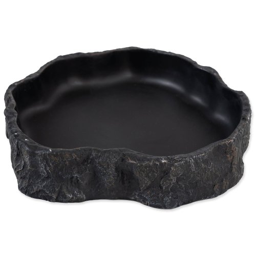 Miska na vodu či krmivo pro plazy, obojživelníky a další druhy zvířat, v černém designu.