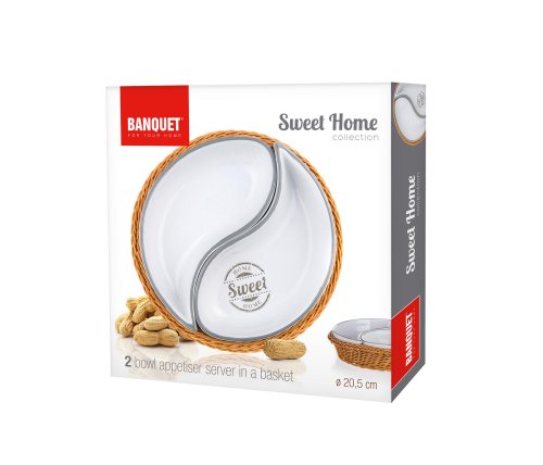 Mísa v košíku SWEET HOME o průměru 20,5 cm v proutěném PVC košíku 20,5 cm, je vhodná na podávání slaných i sladkých pochutin.