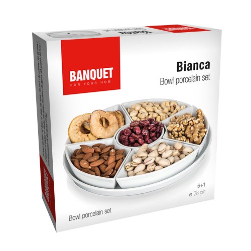 Miska sada 7díl. (6 x miska, 1 x tác) pr. 28 cm, BIANCA, porcelán BÍ.