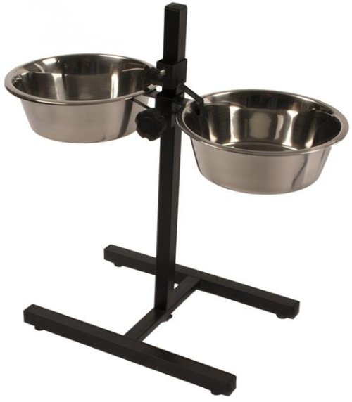 Výškově nastavitelný stojan s nerezovými miskami o průměru 21 centimetrů. Díky nastavitelnosti stojanu je krmení a pití pro psy příjemnější a pohodlnější. Misky lze umístit přesně tak, aby to vyhovovalo přesně Vašemu psovi. Misky jsou vhodné do myčky.
