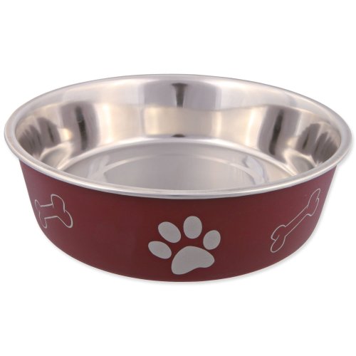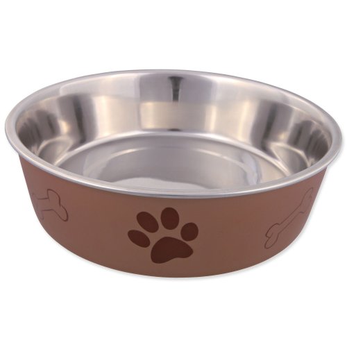 Miska nerezová pro psy s plastovým povrchem. S protiskluzovým kroužkem, který zabrání posouvání misky po podlaze.