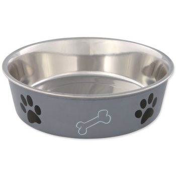 Miska nerezová pro psy s plastovým povrchem. S protiskluzovým kroužkem, který zabrání posouvání misky po podlaze.