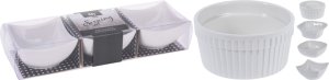 - materiál: bílý porcelán- perfektní pro servírování předkrmů, pochutin, dipů a omáček- rozměry jedné misky cca: 9 x 4,5 cm- žáruvzdorné do 220 °C, lze využít také k zapékání- vhodné do myčky nádobí- …