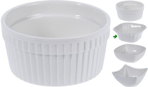 materiál: bílý porcelán- perfektní pro servírování předkrmů, pochutin, dipů a omáček- rozměry jedné misky cca: 9 x 4,5 cm- žáruvzdorné do 220 °C, lze využít také k zapékání- vhodné do myčky nádobí- sada obsahuje 3 kusy misek