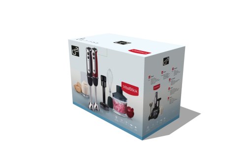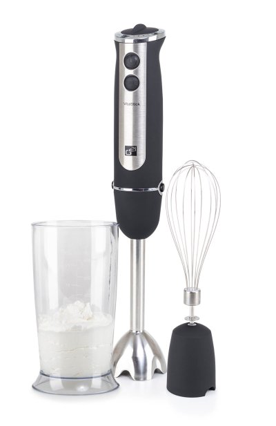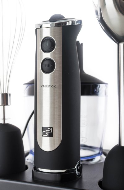 Ano, příslušenství, kterým jsme tyčový mixér VitalStick vybavili, je skutečně bohaté. Základní tyčový nástavec můžete nahradit nerezovou metličkou na sníh nebo nástavcem na přípravu hebkého, hladkého pyré. O stojanu jsme se už zmínili, o nádobách ne, že? K VitalSticku jsou hned dvě. Kvalitní, transparentní s měrnou stupnicí. A spolu s ostatním příslušenstvím je samozřejmě můžete mýt i v myčce.