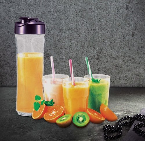 materiál: ušlechtilá nerezová ocel / plast - výkon: 250 W - objem mixovací nádoby: 0,5 l - bezpečnostní pojistka - pohodlné mixování nebo příprava smoothie jednou rukou - mixovací láhev po skončení přípravy odejmete a rovnou můžete vzít kamkoliv sebou s hotovým smoothie - barva: fialová metalická