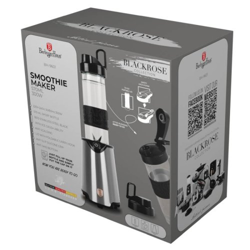 Materiál: nerezová ocel, plast - Výkon: 300 W - 220-240 V 50/60 Hz - Nádoba na vyjmutí s víkem: 570 ml - Barva: černo stříbrná - tyč z nerezové oceli a čepele 18/10 s funkcí drcení ledu - Tlačítko zapnutí/vypnutí - Sportovní láhev s ochranou proti opaření a protiskluzovou silikonovou rukojetí