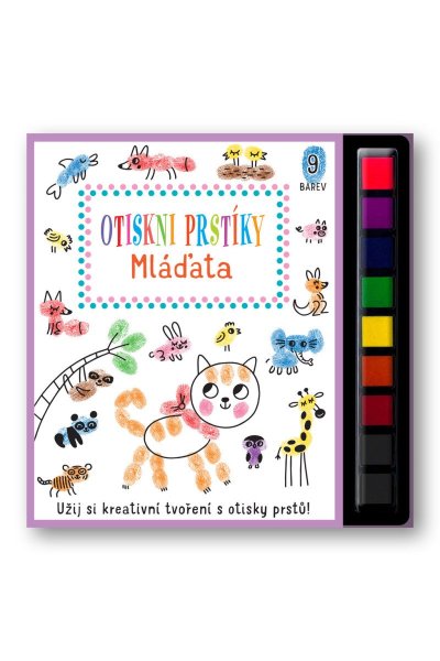 Tato kreativní kniha obsahuje spoustu nápadů a návodů na vytvoření zábavných obrázků pomocí barevných otisků prstíků. Na každé stránce s mláďaty z celého světa se můžeš umělecky vyjádřit a obrázky zaplnit i podle své vlastní fantazie. Hotové otisky můžeš dokončit pomocí fixu a přidat jim drobné, nápadité detaily - vytvářej roztomilá štěňata, želvičky, kuřátka, koaly nebo třeba tučňáky. Různé prsty dělají různé otisky, tak na nic nečekej a pusť se do tvoření!