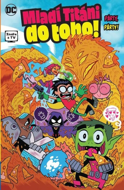 SPRAVEDLNOST NIKDY NEBYLA TAKOVÁ PRČA! Robin, Starfire, Cyborg, Raven a Beast Boy - jsou tým mladí titáni. Nejsuprovější superhrdinská skupina ve vesmíru! Sledujte, jak bojují s pizzovým monstrem, s oživlou video konzolí a legií neschopných superpadouchů. Mladí titáni se pořád dostávají do šílených dobrodružství, jako je likvidace zločineckého golfového hřiště... nebo když se stanou šéfy počítačové společnosti, zahrají si smrtící karetní hru, začnou provádět telefonické naschvály či organizují holčičí pyžamovou párty. Naši přátelé prochází tímhle chaosem a úděsem a vždycky vítězně (tedy, aspoň většinou). Mladí titáni do toho!: Párty, párty! obsahuje díly 1-6 původní, psinou naplněné série založené na animovaném seriálu. Na tomto komiksu se podíleli takoví borci jak Sholly Fisch, Lea Hernandezová, Amy Wolframová, Jorge Corona, Ben Bates... a spousta dalších!