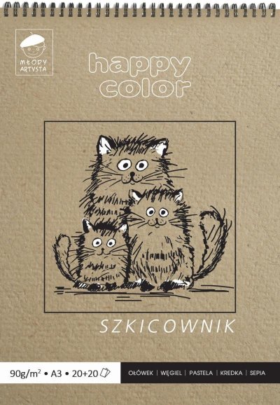 Spirálový skicák s tvrdými deskami obsahuje dva druhy papírů – jemně zrnitý přírodně bílý s gramáží 90g/m2 a lehce drsnější okrový papír o gramáži 80g/m2. Je vhodný pro kresbu tužkou, pastelkami, pastely, uhlem, sépií či rudkou. Díky dvěma různým druhům papíru je možné vytvářet různé efekty při využití stejné techniky malování a tím rozvíjet své malířské umění. br /br /* Počet listů: 40 – 20 bilých a 20 okrových br /* Formát: A3