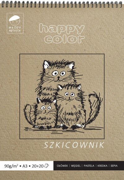 Spirálový skicák s tvrdými deskami obsahuje dva druhy papírů – jemně zrnitý přírodně bílý s gramáží 90g/m2 a lehce drsnější okrový papír o gramáži 80g/m2. Je vhodný pro kresbu tužkou, pastelkami, pastely, uhlem, sépií či rudkou. Díky dvěma různým druhům papíru je možné vytvářet různé efekty při využití stejné techniky malování a tím rozvíjet své malířské umění. <br /><br />* Počet listů: 40 – 20 bilých a 20 okrových <br />* Formát: A3