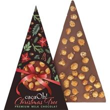 • Mléčná tabulková čokoláda ve formě vánočního stromečku, s karamelizovanými lískovými ořechy
