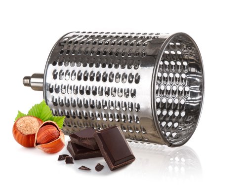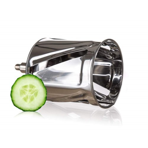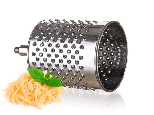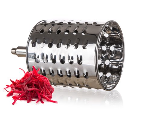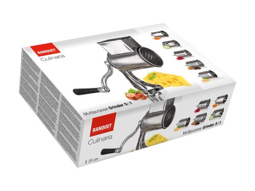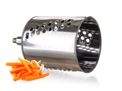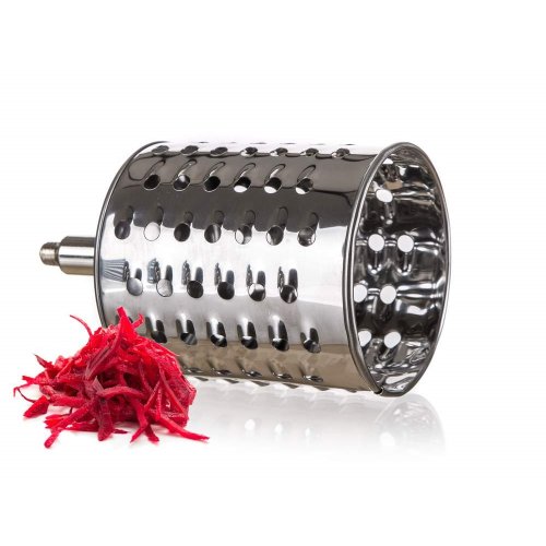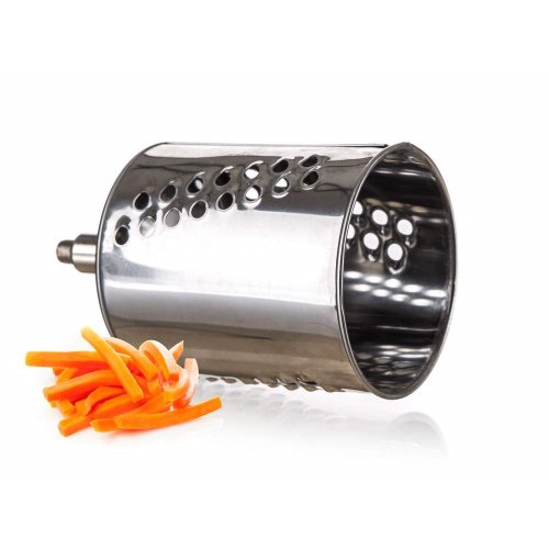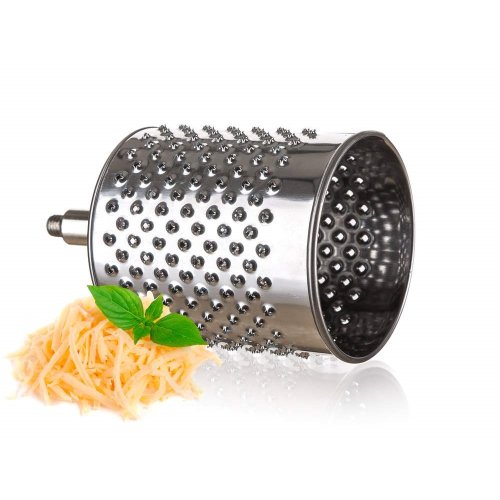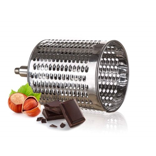 Univerzální nerezový mlýnek je vhodný na strouhání ořechů, čokolády, zeleniny, ovoce a plátkování tvrdých sýrů. Součástí balení je 5 nástavců, které usnadní strouhání a plátkování potravin. Struhadlo je opatřeno pěchovadlem pro bezpečné použití. Bubnová struhadla jsou vyrobena z kvalitní nerezové oceli.