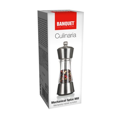 Mechanický mlýnek CULINARIA je dodáván v nerezovém provedení, zásobníky jsou akrylové. Vnitřní část mlýnku tvoří kvalitní keramická mlecí mechanika.