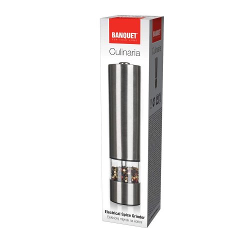 Elektrický mlýnek na koření CULINARIA Tube je dodáván v nerezovým provedení, zásobníky jsou akrylové. Vnitřní část mlýnku tvoří keramická mlecí mechanika. Zdroj napájení 4 x AA tužkové baterie a nejsou součástí výrobku.
