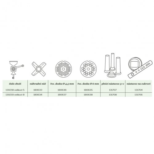 Český výrobce. Kvalitní litinový mlýnek na maso s deskou č. 8. Desky a nože jsou kompatibilní s výrobky značky KDS. EAN 8595017307003